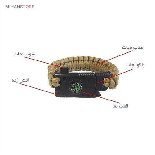 - دارای: چاقو، قطب نما، آتش زنه، طناب، سوت نجات
